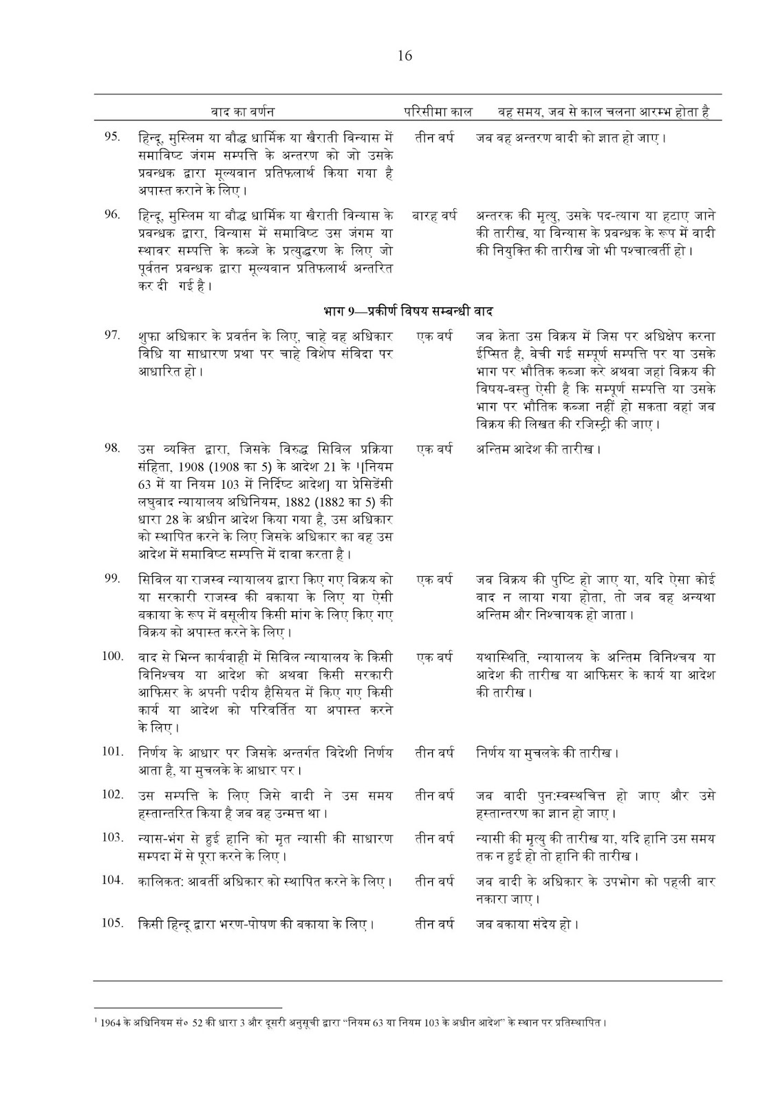 Limitation Act 1963 in Hindi - परिसीमा अधिनियम, 1963